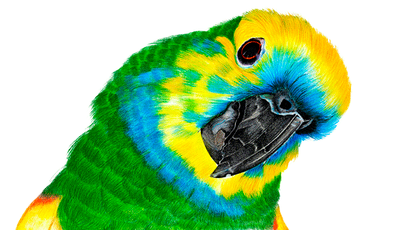 Os traços e combinações de cores constatam o talento inegável de Emanuele Calgaro, mas seus desenhos vão além da técnica. Observar seus pássaros nos causa uma estranha sensação de que estamos vendo uma fração da natureza em pleno espaço expositivo, e isso é incrível. Os artistas são assim, desenham ou pintam o agora pensando no amanhã. Normal, e daí? Sobra para nós animadores ou críticos decifrá-los em seus momentos criativos.
